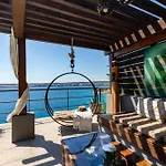 Artistic Beach House With Pool Villa ligger i Jadranovo, 650 m fra Lokvisce, hvor der tilbydes indkvartering med gratis parkering, en solterrasse og en have. Der er også en værdiboks, en personlig værdiboks og en terrasse, et køkken med et køleskab, kaffemaskiner/tekedler og glas.